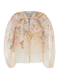 Zimmermann Women 'Illuminate'beige Blouse With Puffed Sleeves And All-Over Floral Print In Linen And
