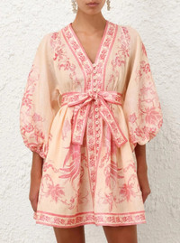 Mini dress Pink V neck Long puffed sleeves Front belt Rear zip closure Straight hem Linen Relaxed fit SKU: 3500DSS252CRMPNKFLO Our Products Are 100% Genuine. In All Cases We Stand By The Authenticity Of Every Product Sold On Our Site. All sales are final and we only accept returns for quality issue. Buyer is responsible for any import tax/duty if applicable.