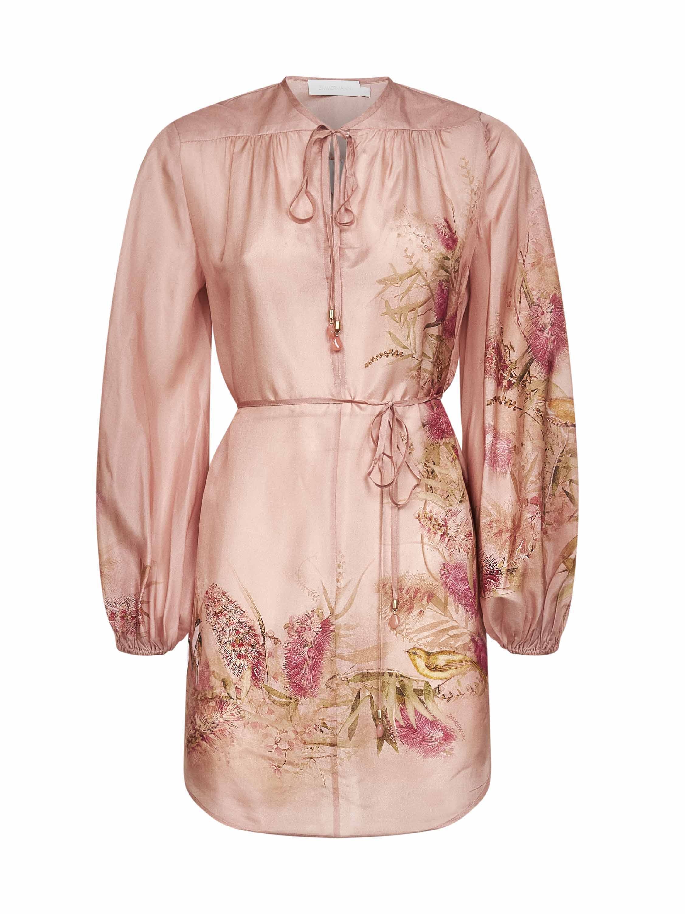 Zimmermann Women Pink Botanical Floral Silk Habotai Cascadian Tunic Top