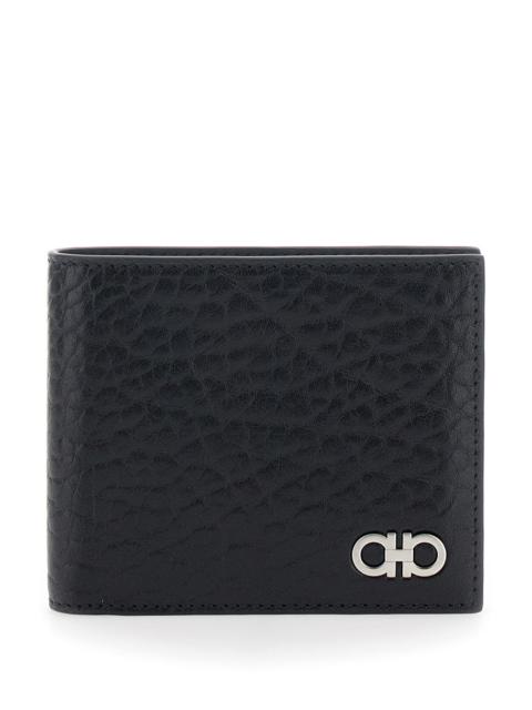 Ferragamo Men 'Revival' Black Wallet With Gancini Buckle On The Front In Hammered Leather Man