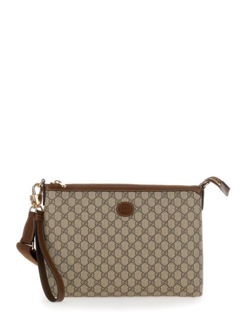 Gucci Men Beige And Ebony Pouch With Gg Patch In Gg Supreme Canvas Man