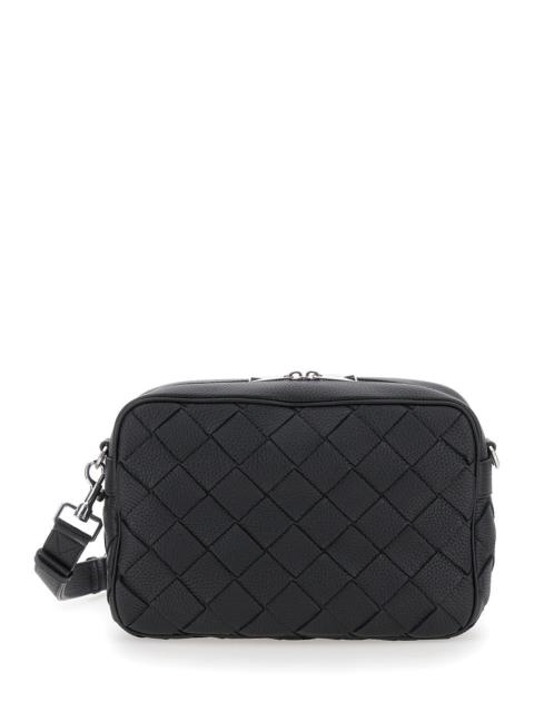 Bottega Veneta Men 'Messenger Medium' Black Crossbody Bag With Intreccio Motif In Hammered Leather M