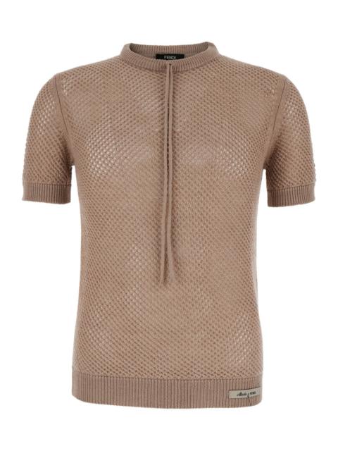 Fendi Men Beige Open Knit Work Sweater In Wool Man