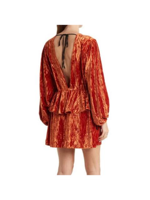 TOPSHOP NWT Balloon Sleeve Open Back Velvet Minidress In Orange