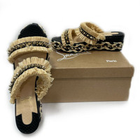 Gorgeous Christian Louboutin Voltinoudou Leather Slides. Worn once no signs of wear on the bottoms or in the soles. Gorgeous and comfortable wedge slides perfect for summer. * SIZE : 40 Fits more like a size 9 * Printed * Studded Accents & Raffia Trim * Platform * Includes Box & Dust Bag Designer Fit: This style typically runs a half size to a full size small. * Heels: 2.25" * Heels: 2.25" * Platforms: 1"
