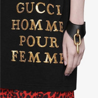 Gorgeous comfy Gucci sequined oversized tee. This T-shirt can be worn as a dress or a loose shirt. New with tags very chic. Size Medium Pulls on; 100% Cotton; Cut-off sleeves,crew neck; Made in Italy Gucci Oversized Men's Women's T-Shirt Color: black Material: Cotton Condition: New with tag