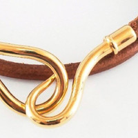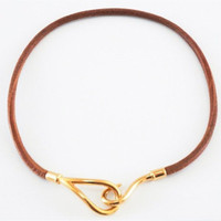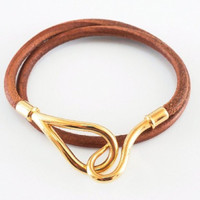 Hermes Brown Leather Jumbo Double Tour Hook Bracelet Golden