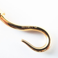 The Hermes Jumbo Hook bracelet features a rolled leather strap and a gold tone metal hook closure. It carries a B+ condition rating. Good condition leather is not discolored. Very few scratches. Gold is in great condition. Dimensions: Length: 1 cm Width: 38 cm cm Fabrics : Leather (Pony-style calfskin), Metal, Colors : Brown, Golden