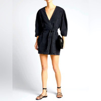 NEW IRO WOMENS FAIRLIE V NECK DENIM WRAP MINI DRESS IN USED BLACK SIZE 40 LARGE Details Wrap dress Denim Detachable waist tie Two front slant pockets Belt loops Button fastening at front Non-stretchy fabric Mid-weight fabric Machine wash Made in Italy 100% Cotton This item is in EXCELLENT condition