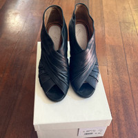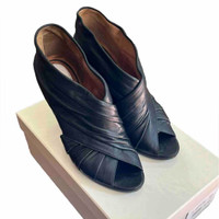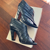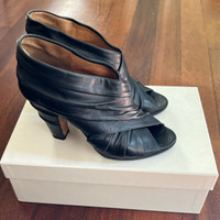 Beautiful Maison Martín Margiela ruched black leather booties from 2008. Really nice, supple leather, suede lining. Size 36.5, runs large and fits like a 7 4.25” heel, added vibram sole very little wear, rarely worn , excellent/like new condition Retail $795