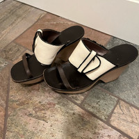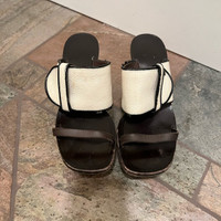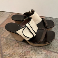Unique platform wedges with white and brown leather straps from ss07 collection Size 37 Surprisingly very comfortable Made in Italy Some signs of wear Similar style on runway