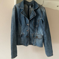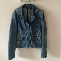 Blue blazer denim jacket from 2000s No size tag, fits like a women’s M 15.5” pit to pit, 20” length Excellent/great condition