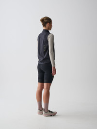 Withstand the elements with the Women's Alt_Road™ Wind Vest. Windproof fabrics provide ultimate protection, while the slim profile and waist cinch lets you dial in your fit. Side pockets offer storage and a casual vibe when you're no longer pedalling. Details - Windproof - Lightweight - Packable Features - Optimising on-bike functionality and freedom of movement with a slim fit that doesn't compromise off-bike modesty. - The lightweight windproof Pertex® Equilibrium shell features a texturised back to enhance next-to-skin airflow. - Substantial secure storage is offered through two front zippered pockets. - Tune in your ideal fit with the adjustable cinch hem. - No bulk and uncompromised comfort with a low-profile bonded and elasticated armhole - Warming up and need to delayer? Packs down quickly into the internal side pocket for an easy stash-and-go solution. - Extra visibility in low light conditions with reflective heat transfers and tabs. Specifications - Product Weight: 150 g - Main Fabric Content: 52% Recycled Nylon, 38% Nylon, 10% Polyester - Fit: Slim - Temperature Range: 6-16 DEGREES - Riding Conditions: Cold - SKU: MPWVE210524_BLAK