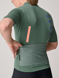 The Women's Embark Team Jersey is crafted from NATURALMATCH®, a lightweight blend of extra fine merino and high-performance synthetics with a super soft skin feel that dials up the comfort. Merino wool offers enhanced moisture-management, antimicrobial and anti-odour properties to ensure you look and feel fresh. MAAP's Race Fit design provides a form-fitting shape with soft, understated lines for an easy-to-wear style. Details - Moisture Wicking - Antibacterial - Anti-Odour - Lightweight stretch extra-fine virgin merino wool blend - Natural Match® wool blends natural and high-performance synthetic fibres - Hydrophilic properties enhance moisture management and quick drying function - Antimicrobial and anti-odour - Stretch ripstop Cordura® back pocket with an elasticated edge - Back zipper stash pocket - Reflective external back patch - Reflective external branding - bluesign® APPROVED fabrications Specifications - Product Weight: 155 g - 5.47 oz - Main Fabric Content: 49% POLYAMIDE, 4% ELASTANE, 47% WOOL - Fit: Race - Temperature Range: 18-30 DEGREES - Riding Conditions: Hot - SKU: MAP-WAJ224_SDSAGE