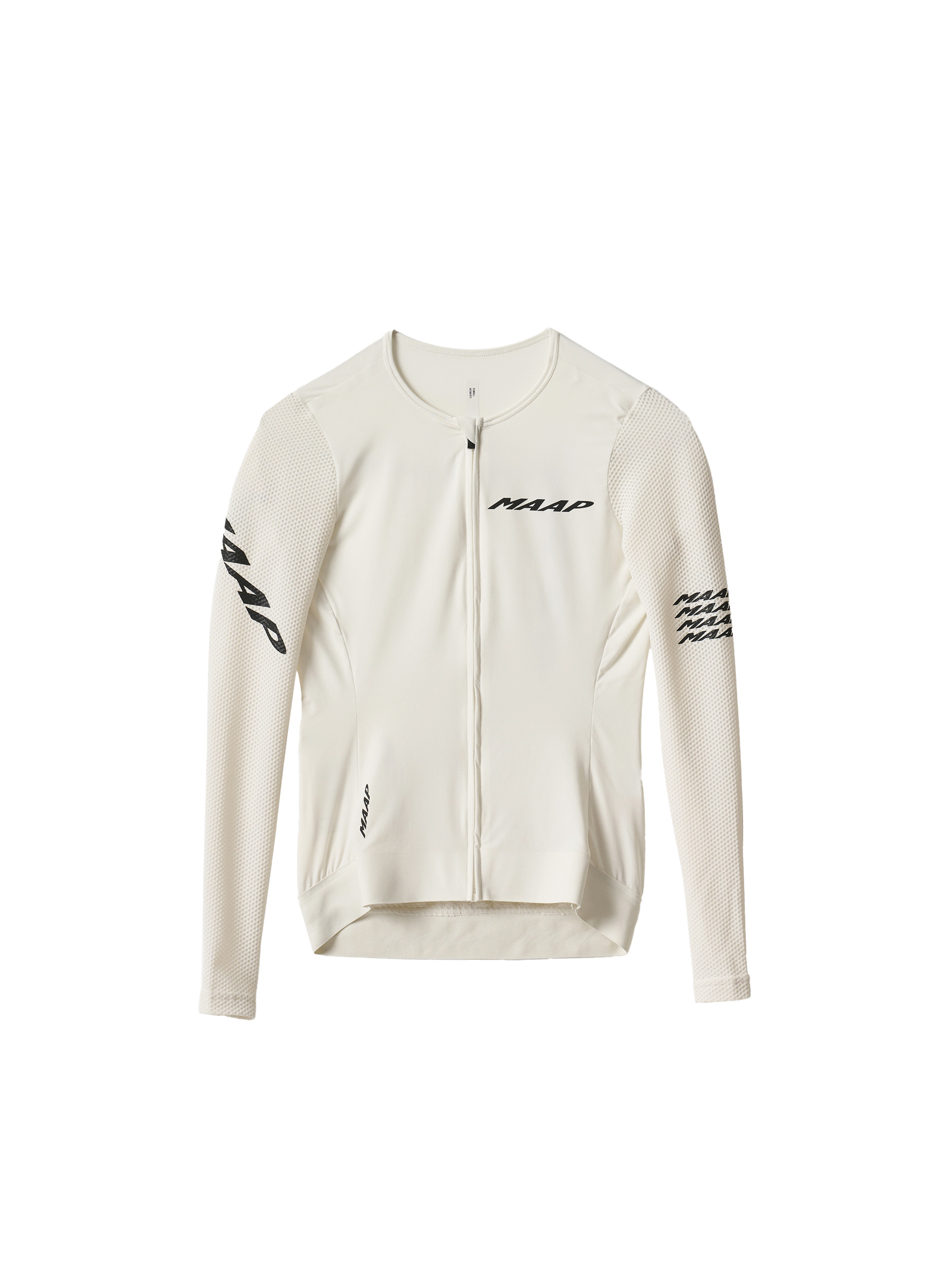 The Emerge Long Sleeve Jersey, where velocity meets versatility, delivers a compressive second-skin profile engineered to elevate everyday performance. Sustainably crafted with ultra-soft, moisture-wicking fabrics, it amplifies fit, form, and precision-comfort across tempo efforts, recovery spins, and everything in between. Details - Recycled Yarns - MAAP Honeycomb - Italian Fabric - bluesign® APPROVED Fabric - Moisture Wicking - Breathable - Reflective Graphics Features - Ultra-soft and recycled knitted Italian fabric across the main body offers comfort and performance without compromising MAAP’s commitment to sustainability. - Optimal shape, structure and breathability delivered with recycled honeycomb mesh sleeves. - The compressive, second-skin Race Fit paired with a low-profile collar elevates everyday performance. - An upgraded bonded shoulder construction reduces bulk for a refined, streamlined profile from the hoods to the drops. - Additional storage with a sleek and secure low-profile internal rear zip pocket. - Extra visibility in low light conditions with reflective print transfers and tabs. Specifications - Product Weight: 180g - Main Fabric Content: Main: 70% Recycled Nylon, 30% Elastane, Sleeves: 78% Recycled Nylon, 22% Elastane - Fit: Race - Temperature Range: 18 - 35 DEGREES - Riding Conditions: Hot - SKU: MPWLS252425_VAPR