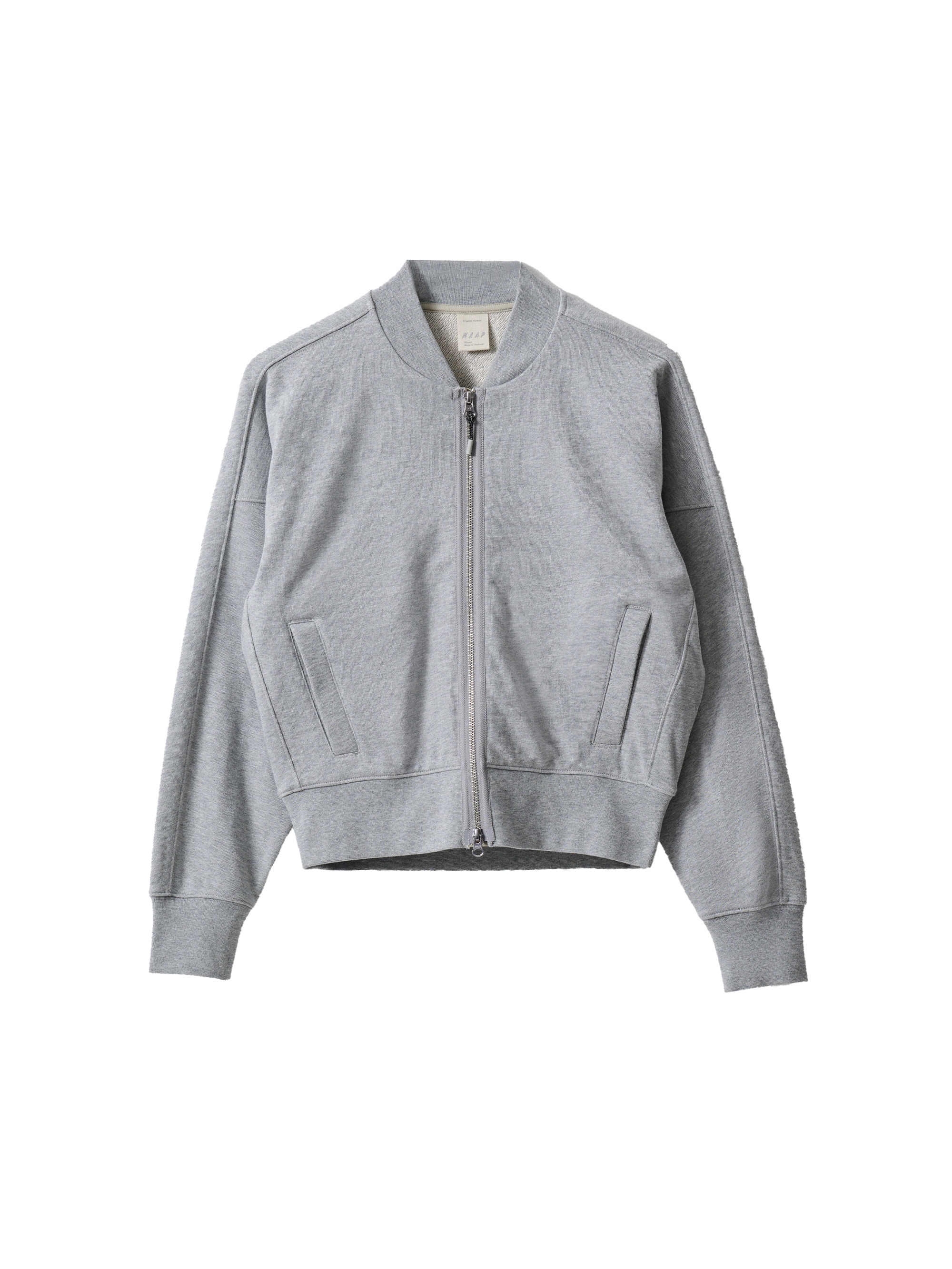 Exaggerated detailing takes the Women's Essentials Zip Crew from loungewear to wherever you want to wear it. Deep ribbed hem, pleated lower back and lifted seams give this zip crew a fit for ultimate comfort. Details - Organic Cotton - 420 GSM Organic Cotton - Loopback Jersey - Ribbed Cuffs, Hem and Collar - Rear Single Jet Zip Pocket with Cotton Ripstop Pocket Bags - Pleated Lower Back - Reflective Transfers - 1/2 Lined Front Body - Relaxed Fit Specifications - Product Weight: 600 g - Main Fabric Content: 100% Organic Cotton - Fit: Relaxed - SKU: MPWTO241224_GYML