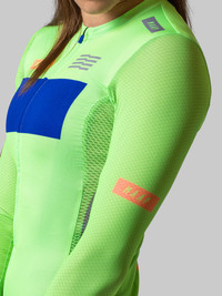 The Women's System Pro Air Long Sleeve Jersey is an ultra-lightweight, performance-driven jersey that combines moisture-wicking technology with breathable fabrics. Engineered to regulate body temperature, maximise airflow and optimise cooling to ensure performance and comfort is always dialled, even when the temperature and tempo are rising. Details - Recycled Yarns - Moisture Wicking - Lightweight Features - Warp-knit sleeves combined with carbon yarn technology provide advanced strength and advanced comfort - Details matter, the YKK zip features a locking tab mechanism to ensure no sliding zippers - The back side zip stash pocket keeps your cash, keys and other valuables secure Specifications - Product Weight: 121 g - 4.27 oz - Main Fabric Content: 90% Polyester, 10% Elastane - Fit: Race - Temperature Range: 20-40 DEGREES - Riding Conditions: Hot - SKU: MAP-WAL158_GLW