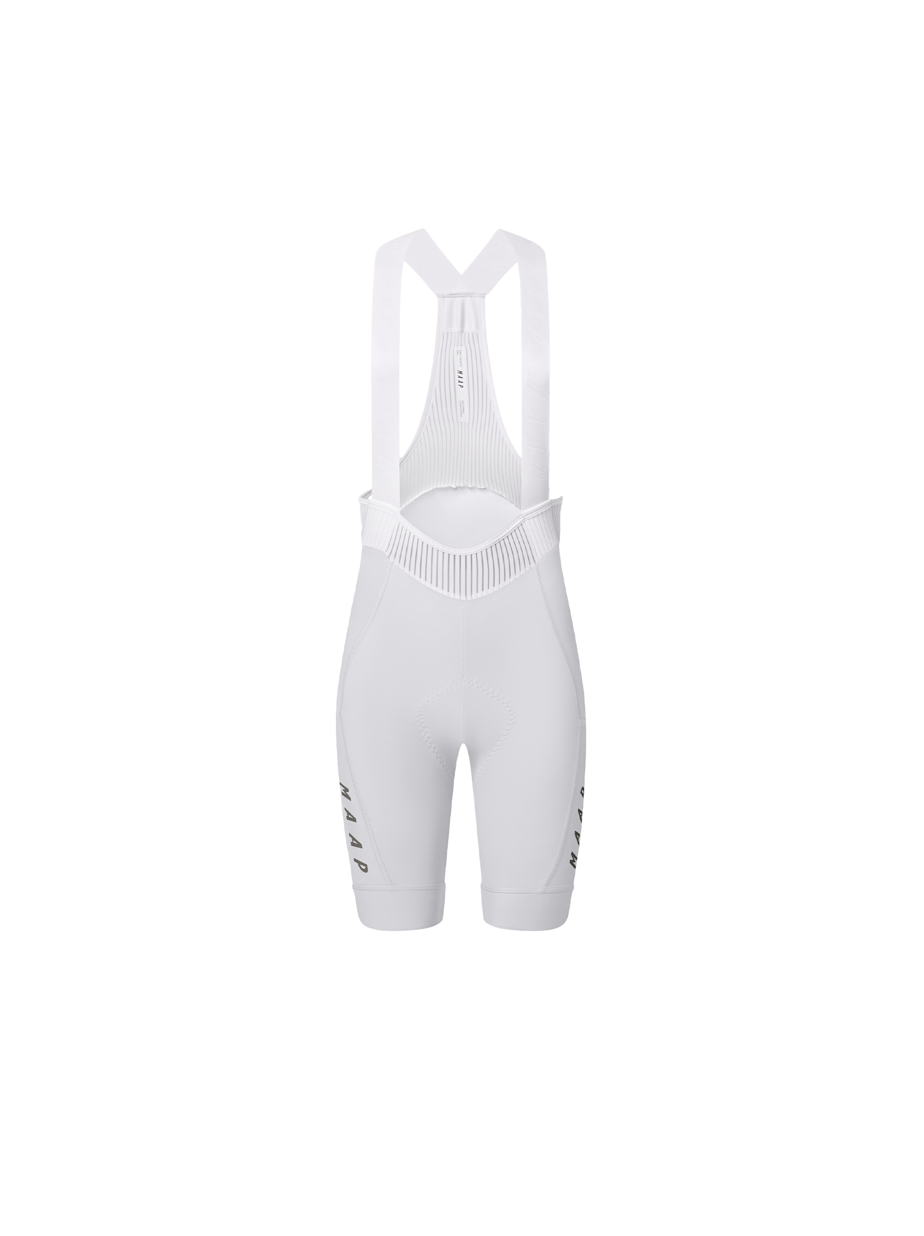 Upgrade your long rides with the Women's Team Bib Evo Cargo. Engineered for all-day comfort with MAAP’s advanced technology chamois and female-specific cut, delivering elevated functionality with seamlessly integrated cargo pockets for extra storage. Details - Moisture Wicking - Breathable - 4 Way Stretch - bluesign® APPROVED Fabric - Italian Fabric - Reflective Graphics - UPF 50+ Protection Features - High-performance lightweight tights, now designed with functional dual-side cargo pockets for additional storage on the go. - The main body fabric is engineered for optimal stretch, recovery, and shape retention for a longer-lasting wear. - The elasticated ankle hem band with silicone gripper provides a sleek profile that stays firmly in place. - A high airflow back mesh offers maximum breathability for when the tempo rises. - Seamless elastic bib brace straps relieve pressure points and offers a sleek profile. Specifications - Product Weight: 225 g - Main Fabric Content: 80% POLYAMIDE, 20% ELASTANE - Fit: Race - Temperature Range: 15 - 41 DEGREES - Riding Conditions: Hot - SKU: MPWBS240225_WHIT