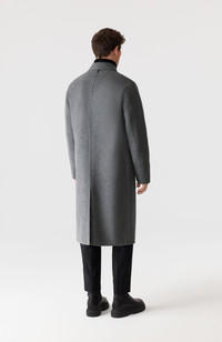 BECKETT is a handcrafted double face wool Balmacaan overcoat, cut to a modern and relaxed silhouette. The front closure is detailed with horn buttons, adding to the traditional design. Functional elements include patch pockets for essentials and a center back vent for increased mobility. This overcoat is unlined, allowing for a flawless drape of the wool fabric. DETAILS - Handmade wool overcoat - RWS-certified wool - Balmacaan silhouette - Horn buttons - Button front closure - Patch pockets - Vent at center back - Unlined SIZE & FIT - RELAXED – Loose fit for on the go comfort. - Designed to be worn with heavier layers. - The model is 6'2" (187 cm) and wears a size 40. - Coat length from shoulder to hem: 46'' / 117 cm. COMPOSITION & CARE - Shell: 100% wool. Lining: 100% polyester. - Dry clean by a leather specialist using only oil-based solvent. Do not use perchloroethylene.