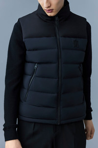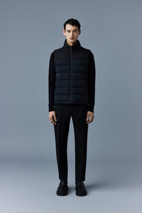 BOBBIE is an AGILE-360 ultra light recycled down vest for men with a zip front closure. The soft quilted shell is enhanced with 2-way stretch for a comfortable feel. Contrast twill accents the yoke and stand collar. Outsized insulated zip pockets offer storage while the drawcord hem adds warmth. A modern classic for failsafe year-round layering. DETAILS - AGILE-360 ultra light stretch down vest - Traceable and recycled duck down - 800 fill power - Light: Down to 0°C - 2-way stretch shell - Channel quilt stitching - Contrast twill yoke and collar - Center front zip closure with stand collar - Insulated long zip waist pockets - Adjustable drawcord at hem - Signature M logo patch on left chest - Regular fit SIZE & FIT - REGULAR – Classic fit allowing comfort and style. - Designed to be worn with heavier layers. - Coat length from shoulder to hem: 30'' / 76.2 cm. COMPOSITION & CARE - Shell : 82% polyamide/nylon, 18% elastane/spandex. Combo shell: 70% polyester, 30% rayon. Lining : 82% polyamide/nylon, 18% elastane/spandex. Filling : 90% duck down. 10% duck feathers. Water-repellent & water-resistant. - Dry clean by leather specialist using oil based solvent only. Do not use perchloroethylene.