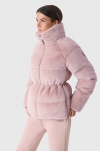 CASSIDY is a recycled mixed-media down-filled jacket crafted from stretch fabric shell. Faux fur front and sleeves add unique tactile detailing throughout. Designed for subzero protection, it includes a full front zip closure, adjustable bungees at the hem and waist, and insulated side seam zip pockets. The stand collar, rib knit cuffs, and piping detail deliver elevated warmth and structure. DETAILS - Quilted mixed-media down jacket - Faux fur front and sleeves - Stretch shell fabric - GRS-certified recycled down - Temperature Rating: -15°C - Recycled nylon-elastane shell with raglan sleeves - Removable hood with adjustable bungee cord and stopper - Center front zip closure with storm placket - Hidden zip pockets at side seam - Inner welt pocket with zipper - Rib knit cuffs - Adjustable bungees at waist and hem - Faux fur lining at hood - “M” logo on left sleeve - Piping detail - Fully lined SIZE & FIT - RELAXED – Loose fit for on the go comfort. - Designed to be worn with heavier layers. - The model is 5'11" (180 cm) and wears a size S. - Coat length from shoulder to hem: 28'' / 59 cm. COMPOSITION & CARE - Shell: 100% polyester. Lining: 100% recycled nylon. Filling: 90% recycled down, 10% recycled feathers. - Dry clean by leather specialist using oil based solvent only. Do not use perchloroethylene.