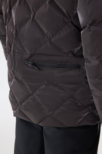 CILLIAN-GLO is a diamond and channel quilted ski jacket crafted from a high-gloss shell. Filled with recycled down for subzero warmth, it features a removable storm visor hood, integrated snow skirt, and adjustable technical trims. Interior suspenders and utility storage offer extra functionality to this alpine essential. DETAILS - High-gloss diamond and channel quilted shell - Temperature Rating: -15°C - Recycled down insulation - Removable hood with storm visor and adjustable drawcord - Collar lined in teddy - Adjustable storm cuffs with thumb loops - Water-resistant center front zipper - Chest pockets and waist pockets with zippers - Interior shoulder straps - Zippered ski pass pocket at left sleeve - Inside zippered pocket and goggle/key holder - Detachable powder skirt at waist - Underarm eyelets for ventilation - “MACKAGE” silicone ski patch at left sleeve - MACKAGE branded storm placket - Stand collar - Relaxed fit SIZE & FIT - RELAXED – Loose fit for on the go comfort. - Designed to be worn with heavier layers. - The model is 6'2" (187 cm) and wears a size 40. - Coat length from shoulder to hem: 28.25'' / 109 cm. COMPOSITION & CARE - Shell: 100% polyurethane.Lining: 82% recycled nylon, 18% elastane/spandex. Filling: 90% down, 10% feathers. Water-repellent, water-resistant. - Close zippers. Remove fur. Remove all removable trims. Wash in domestic machine in water not exceeding 30°C at delicate gentle setting. Wash inside out. Use mild detergent. Remove immediately after washing. Do not soak. Tumble dry at low heat with tennis balls until fully dried (1 to 3 hours). Do not wet-clean. Do not bleach. Do not wring. Do not iron or press. Do not steam. Do not dry clean.