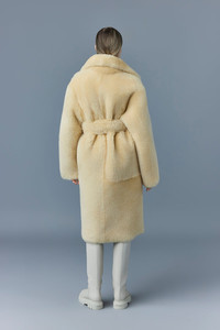 ETIENNE is a reversible double-breasted coat for women crafted from incredibly soft shearling. The peaked lapel, dropped shoulders, and sash belt bring dimensionality to the relaxed silhouette. A cozy and striking sartorial solution to cold weather. DETAILS - Long shearling coat - Double-breasted closure with hidden snaps - Tonal sash belt - Fend off extreme cold: protection down to -20ºC - Dropped shoulders - Oversize fit—size down for more traditional fit - Made in Turkiye SIZE & FIT - OVERSIZED – Casual and cool fit for layering. - Designed to be worn with heavy layers or alone for an edgy look. - For a more fitted look or for petite customers, we recommend to size down. - The model is 5'11" (180 cm) and wears a size XS. - Length from shoulder to hem: 41'' / 104 cm. COMPOSITION & CARE - Shell: 100% lamb leather. - Dry clean by leather specialist using oil-based solvent only. Do not use perchloroethylene. - Slight transfer of colour may occur when being worn for the first few times. Great care should be taken when wearing and handling. - Garment should be dry cleaned by a leather specialist only, with all closures and trims closed or removed. - Garment must be stored in the original garment bag, never in plastic polybag. - Use proper size hanger to maintain the shape of the coat. - Prevent the humidity since it is natural shearling. With humidity, appearance might affected. - Exposure to rain should be avoided; water may cause staining and may affect the texture of the sheepskin. - If exposed to rain, let it dry in cool ventilated area, away from any heat source and direct sunlight. - Do not steam shearling, but use fur brush if needed.