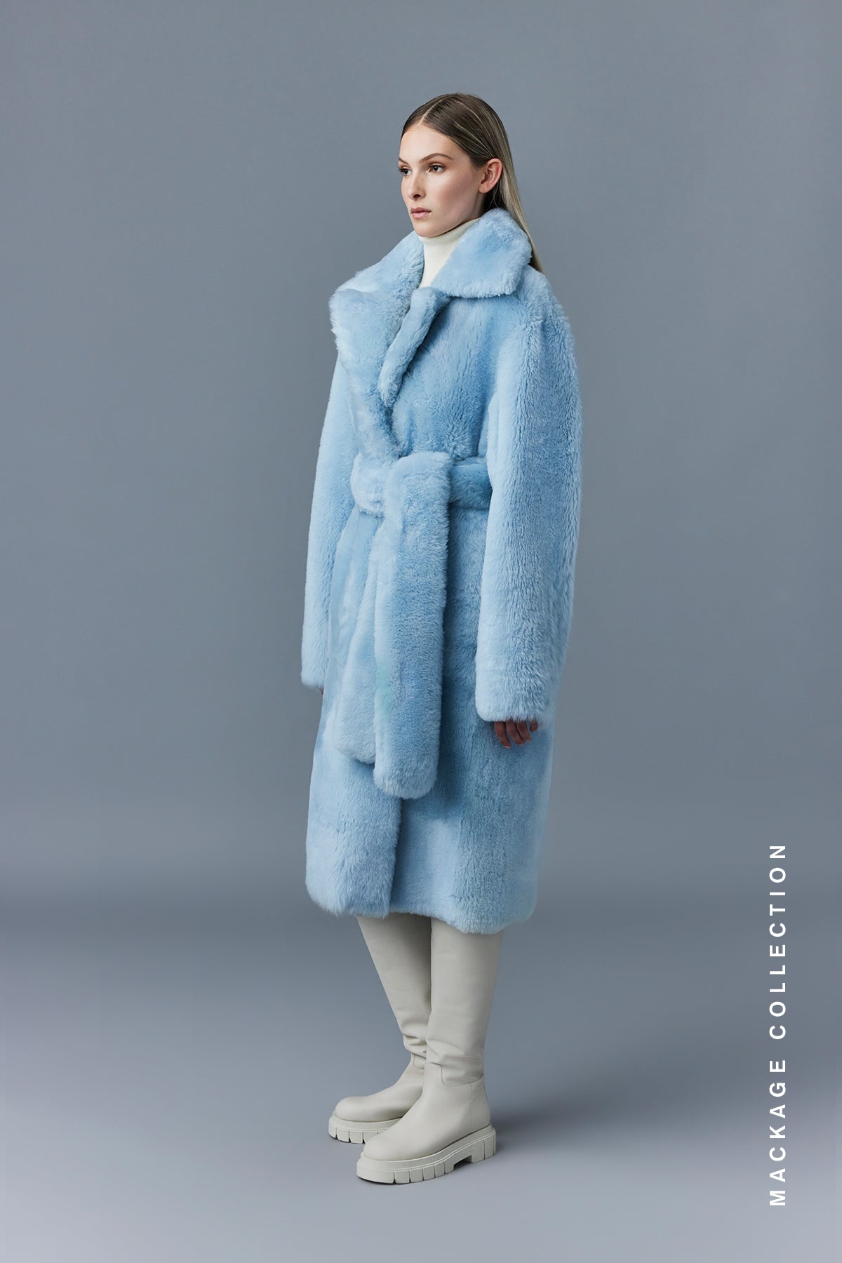 ETIENNE is a reversible double-breasted coat for women crafted from incredibly soft shearling. The peaked lapel, dropped shoulders, and sash belt bring dimensionality to the relaxed silhouette. A cozy and striking sartorial solution to cold weather. - Long shearling coat - Double-breasted closure with hidden snaps - Reversible style - Tonal sash belt - Fend off extreme cold: protection down to -20ºC - Dropped shoulders - Oversize fit—size down for more traditional fit - Made in Türkiye SIZE & FIT - OVERSIZED – Casual and cool fit for layering. - Designed to be worn with heavy layers or alone for an edgy look. - For a more fitted look or for petite customers, we recommend to size down. - The model is 5'11" (180 cm) and wears a size XS. - Length from shoulder to hem: 41'' / 104 cm. COMPOSITION & CARE INSTRUCTIONS - Shell: 100% lamb leather. - Dry clean by leather specialist using oil-based solvent only. Do not use perchloroethylene. This garment is a luxury item made of genuine sheepskin. The fine skins used to make this garment have been treated and conditioned. Skins may present slight variations in colour, which is not a defect, but a natural characteristic. -Slight transfer of colour may occur when being worn for the first few times. Great care should be taken when wearing and handling. -Garment should be dry cleaned by a leather specialist only, with all closures and trims closed or removed. -Garment must be stored in the original garment bag, never in plastic polybag. -Use proper size hanger to maintain the shape of the coat. -Prevent the humidity since it is natural shearling. With humidity, appearance might affected. -Exposure to rain should be avoided; water may cause staining and may affect the texture of the sheepskin. -If exposed to rain, let it dry in cool ventilated area, away from any heat source and direct sunlight. -Do not steam shearling, but use fur brush if needed.