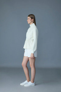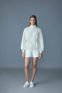 FINOLA is a full-zip top made with double-face jersey. With a stand collar and adjustable drawcord at the waist, this ready-to-wear piece offers superior comfort and unique detailing. The balloon sleeves add a modern touch, while functional details such as the hidden side-seam pocket and MACKAGE logo on the chest complete the design. Ideal for layering and transitional weather, merging contemporary design with practical features. DETAILS - Full-zip top - Double-face jersey stand collar - Adjustable drawcord at waist - Balloon sleeves - Hidden pocket at side seam - MACKAGE logo on right chest - Center front zipper closure SIZE & FIT - REGULAR – Classic fit allowing comfort and style. - Designed to be worn with heavier layers. - The model is 5'11" (180 cm) and wears a size S. - Length from shoulder to hem: 24'' / 61 cm. COMPOSITION & CARE - Shell: 53% cotton, 47% polyester. Combo: 72% polyamide/ nylon, 27% polyester, 1% elastane/spandex. Lining: 100% cotton. - Wash in domestic or commercial machine in water not exceeding 30°C at normal setting. Wash inside out. Use mild detergent. Wash with similar colors. Remove immediately after washing. Do not tumble dry. Iron with or without steam by hand, or press on commercial equipment, at low temperature (not exceeding 110°C). Do not bleach. Dry clean using oil-based solvent only. Do not use perchloroethylene.
