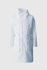 GAGE is a lightweight ripstop shell parka, fully seam sealed for a highly protective layer against the wind and rain. Made from recycled pre-consumer yarn, it features an adjustable drawcord at the hood, waist, and bottom hem. Articulated sleeves and underarm eyelets enhance mobility and ventilation for diverse weather conditions. Multiple zip pockets, storm placket, and fish-tail vent add to the utilitarian outerwear design. DETAILS - Long shell parka jacket - Waterproof, water-repellant and water-resistant ripstop - Seam sealed construction throughout - Made from recycled pre-consumer yarn - Adjustable drawcord at hood, waist, and bottom hem - Inside pocket, welt pocket with snap closure, waist pockets with zippers - Adjustable sleeve cuff with bungee cord and stopper - Fish tail vent at back hem - Center front storm placket - Center front zipper closure - Water resistant zipper at center front and pockets - Articulated sleeves - Underarm eyelets for ventilation - 'MACKAGE' silicone branding at pocket - Unlined SIZE & FIT - RELAXED – Loose fit for on the go comfort. - Designed to be worn with heavier layers. - The model is 6'2" (187 cm) and wears a size 40. - Coat length from shoulder to hem: 43 ¼'' / 110 cm. COMPOSITION & CARE - Shell: 75% recycled polyamide, 25% polyamide/ nylon. Waterproof, water-repellant & water-resistant. - Dry clean by a leather specialist using only oil-based solvent. Do not use perchloroethylene.