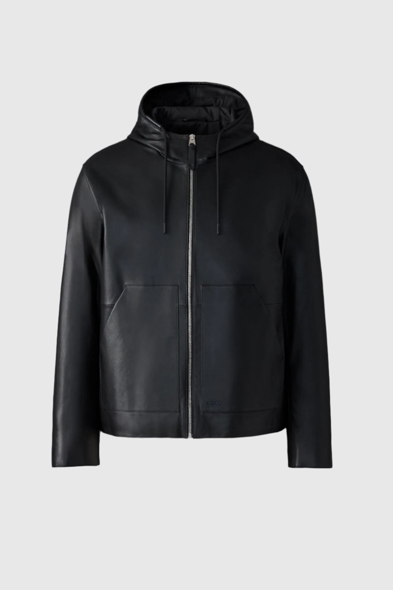 IVAN is a hooded jacket crafted from understated matte leather. Cut to a refined casual fit, it features functional patch pockets, underarm eyelets for ventilation, and a secure inner welt pocket. The hood and hem adjust with drawcords for a personalized fit, while a debossed MACKAGE logo at the patch pocket adds signature detail. Fully lined for comfort during milder weather. DETAILS - Lamb leather hooded jacket - Center front zip closure - Adjustable drawcord at hood and hem - Patch pockets with snap closure - Underarm ventilation eyelets - Inner welt pocket with zipper - Debossed MACKAGE logo on pocket - Fully lined - Regular fit SIZE & FIT - REGULAR – Classic fit allowing comfort and style. - Designed to be worn with heavier layers. - The model is 6'2" (187 cm) and wears a size 40. - Coat length from shoulder to hem: 26.25'' / 66 cm. COMPOSITION & CARE - Shell: 100% lamb leather. Lining: 100% polyester. - Dry clean by leather specialist using oil based solvent only. Do not use perchloroethylene.
