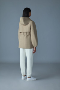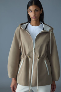KALEA-Z is a sustainable rain jacket constructed from recycled materials with seam-sealed construction for enhanced weather resistance. Tailored with a regular fit, it features a non-removable hood with an adjustable storm visor, making it ideal for rainy conditions. Functional and stylish, this jacket incorporates adjustable details at the waist, cuffs, and hood to provide a custom fit. Rain shedder at the back adds extra protection from the elements. DETAILS - Water-resistant and windproof rain jacket - GRS-certified recycled materials - Seam-sealed construction - Water-resistant zipper at center front and pockets - Hood with adjustable storm visor - Adjustable drawcord at waist - Balloon sleeves - Adjustable sleeve cuffs with bungee cord and stopper - MACKAGE silicone 'M' logo on sleeve - Inside pocket for secure storage - Rain shedder at back - Drawcord at hood - Partially lined SIZE & FIT - REGULAR – Classic fit allowing comfort and style. - Designed to be worn with heavier layers. - The model is 5'11" (180 cm) and wears a size S. - Coat length from shoulder to hem: 29'' / 74 cm. COMPOSITION & CARE - Shell: 100% recycled polyester. Water repellant & water resistant. - Dry clean by a leather specialist using only oil-based solvent. Do not use perchloroethylene.