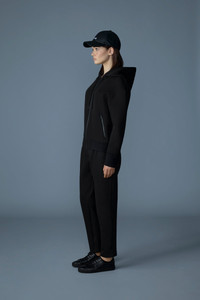 KRYSSA is a zip-up hoodie made from double-face jersey. The rib knit cuffs and hem provide an enhanced fit for better warmth and comfort, while the hood's drawcord offers adjustable coverage. Zippered waist pockets secure your essentials, and the "MACKAGE" logo at chest adds subtle brand flair. Partially lined with a sleek design for essential everyday functionality. DETAILS - Double-face hoodie with front zipper - Rib knit cuffs and hem - Adjustable drawcord hood - Centre front zipper closure - Waist pockets with zippers - Signature "MACKAGE" silicone logo at chest - Partially lined - Machine washable SIZE & FIT - RELAXED – Loose fit for on the go comfort. - Designed to be worn with heavier layers. - The model is 5'11" (180 cm) and wears a size S. - Length from shoulder to hem: 23'' / 58 cm. COMPOSITION & CARE - Shell: 53% cotton, 47% polyester. Combo: 72% polyamide/ nylon, 27% polyester, 1% elastane/spandex. Lining: 100% cotton. - Wash in domestic or commercial machine in water not exceeding 30°C at normal setting. Wash inside out. Use mild detergent. Wash with similar colors. Remove immediately after washing. Do not tumble dry. Iron with or without steam by hand, or press on commercial equipment, at low temperature (not exceeding 110°C). Do not bleach. Dry clean using oil-based solvent only. Do not use perchloroethylene.