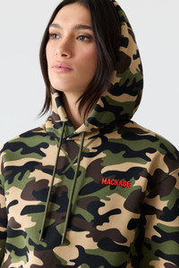 KRYSTIANA-CAMO is a classic hoodie crafted from double-face jersey and styled in a bold camouflage print. Designed with a relaxed fit, it features a drop shoulder cut, kangaroo pocket, and adjustable hood for all-day comfort. Contrast detailing includes a red MACKAGE logo at chest and stripes at cuffs. DETAILS - Hoodie sweatshirt in camouflage print - Double-face jersey - Drop shoulder cut - Kangaroo pocket - Adjustable drawcord hood - "MACKAGE" silicone logo at chest - V-insert at neckline - Rib knit cuffs and hem - Machine washable - Relaxed fit SIZE & FIT - RELAXED – Loose fit for on the go comfort. - Designed to be worn with heavier layers. - The model is 5'11" (180 cm) and wears a size S. - Coat length from shoulder to hem: 24.25'' / 67 cm. COMPOSITION & CARE - Shell: 53% cotton, 47% polyester. Lining: 100% cotton. - Wash in domestic or commercial machine in water not exceeding 30°C at normal setting. Wash inside out. Use mild detergent. Wash with similar colors. Remove immediately after washing. Do not tumble dry. Iron with or without steam by hand, or press on commercial equipment, at low temperature (not exceeding 110°C). Do not bleach. Do not dry clean.