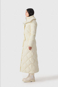 LAURELLA is a long belted coat insulated with GRS-certified down. Featuring a removable lightweight down bib, diamond quilting, and wide collar, it offers sophisticated styling and versatile performance. The storm cuffs provide extra coverage, while underarm ventilation provides comfort on milder days. DETAILS - Down trench coat - Lightweight stretch recycled nylon - GRS-certified recycled down - 2-in-1 construction with removable lightweight down bib - Diamond quilted body and sleeves - Wide collar with center front placket and snaps - 2-way center front zipper closure - Adjustable sash belt at waist - Welt pockets with zippered openings - Inner welt pocket with zipper - Storm cuffs and rib knit cuffs - Embroidered eyelets for ventilation - Machine washable - Fitted silhouette - Temperature Rating: -15°C SIZE & FIT - FITTED – Our signature fit, closest to the body. - Designed to be worn with light layers, all while keeping you warm. - For heavier layering, we recommend sizing up. - The model is 5'11" (180 cm) and wears a size S. - Coat length from shoulder to hem: 52.25'' / 133 cm. COMPOSITION & CARE - Shell: 82% recycled nylon, 18% elastane/spandex. Lining: 82% recycled nylon, 18% elastane/spandex. Filling: 85% recycled down, 15% recycled feathers. Water-repellent, water-resistant. - Close zippers. Remove fur. Remove all removable trims. Wash inside out. Wash in domestic machine in water not exceeding 40°c, at normal setting. Use mild detergent. remove immediately after washing. Do not soak. Tumble dry low heat with tennis balls, until fully dried (1to 3 hours). Do not wet-clean. Do not bleach. Do not wring. Do not iron or press. Dry clean using oil based solvent only. Do not use perchloroethylene.