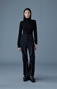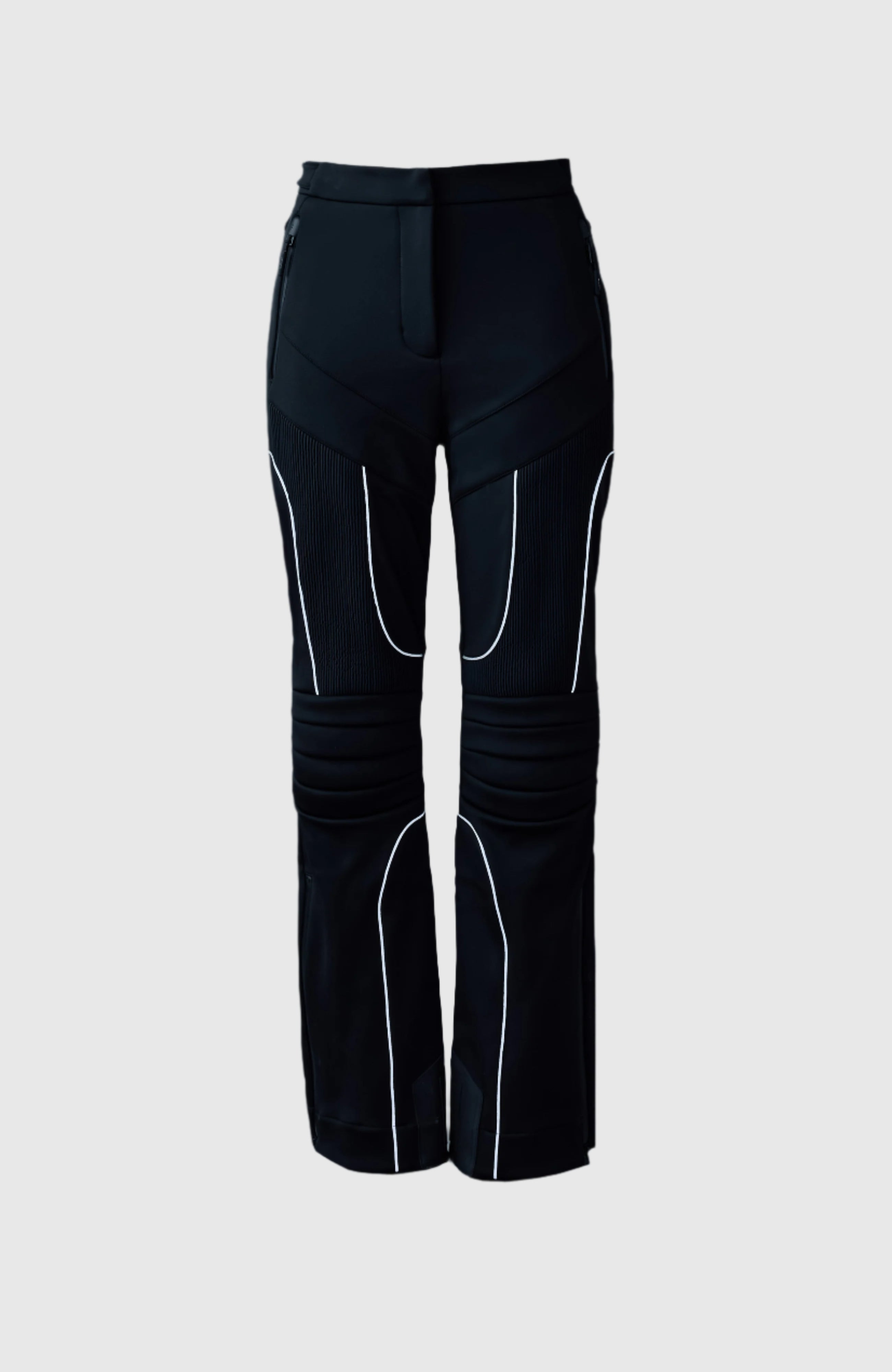 MAIKA are ski pants made with techno fleece and elasticized smocked detailing for ease of movement. Crafted from a water resistant, repellent, and windproof two-layer fabric, it features a scuff guard and water-resistant zippers for snow proof protection. Fitted cut with padded detailing at knees ensure optimal fit and sleek slopestyle. DETAILS - Ski pant - Techno Fleece fabric - Water-repellent, resistant, and windproof - Scuff guard at inseam hem - Pockets with zippers - Water resistant zipper - Padded details knees - Zipper opening at bottom hem for ski boots - Center front fly with zipper, hook, & bar and snap - Smocked elasticized detail - Machine washable - Down to -15ºC SIZE & FIT - FITTED – Our signature fit, closest to the body. - Designed to be worn with light layers, all while keeping you warm. - For heavier layering, we recommend sizing up. - The model is 5'11" (180 cm) and wears a size XS. - Inseam length: 31'' / 79 cm. COMPOSITION & CARE - Shell: 82% polyamide/nylon, 18% elastane/spandex. Combo shell: 82% recycled nylon, 18% elastane/spandex. Lining: 82% recycled nylon, 18% elastane/spandex. Water-repellent and water-resistant. - Close zippers. Remove all removable trims. Wash inside out. Wash in domestic machine in water not exceeding 30°C at delicate gentle setting. Use mild detergent. Wash with similar colors. Remove immediately after washing. Do not soak. Tumble dry at low heat, until fully dried. Do not wet-clean. Do not bleach. Do not wring. Do not iron or press. Dry clean using oil-based solvent only. Do not use perchloroethylene.