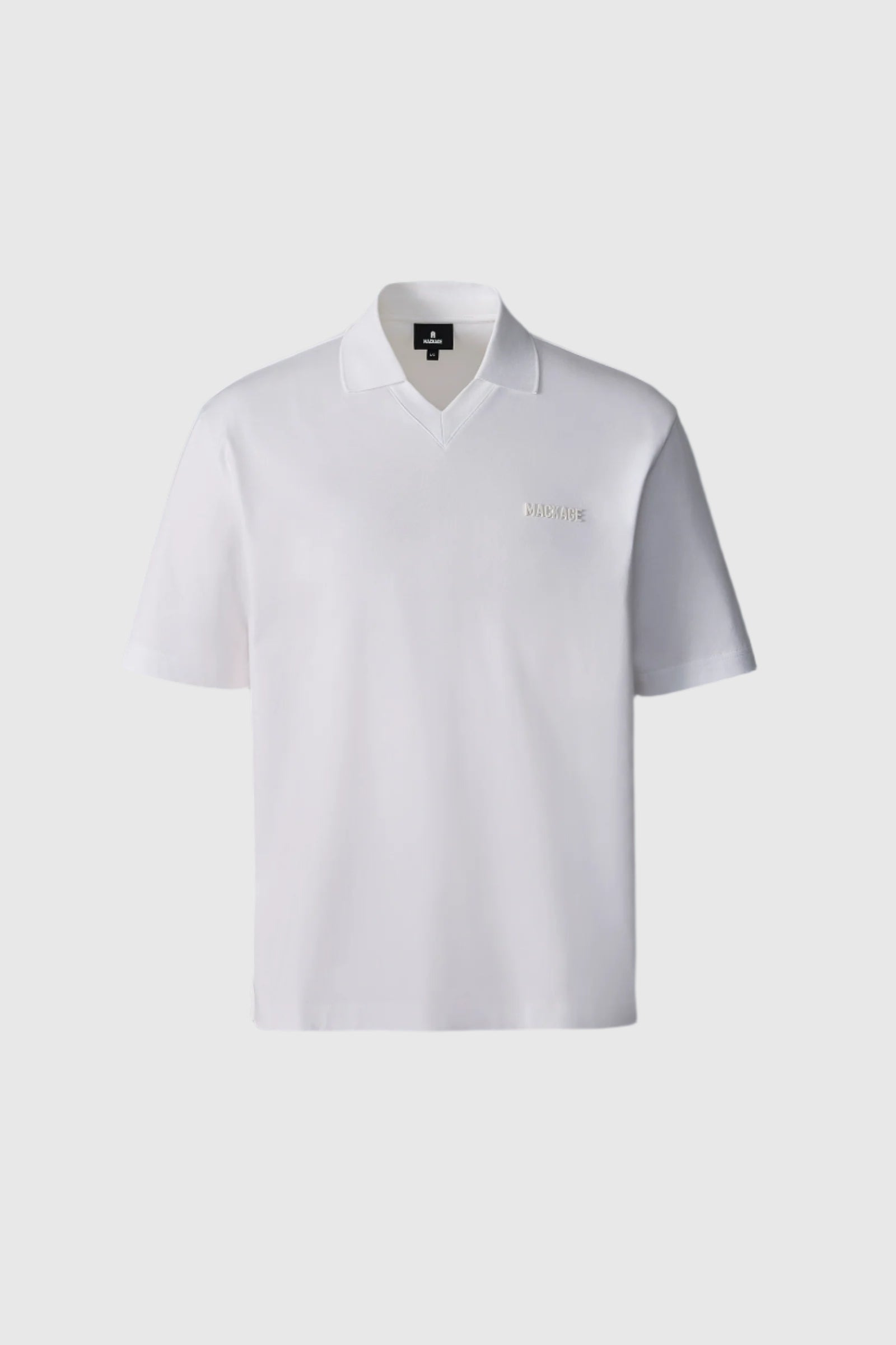 MARCO is a classic polo crafted from 100% organic mercerized cotton for breathable, everyday comfort. Featuring a subtle V-neck polo collar with rib knit detailing, it has a modern, relaxed style. Side slits at the hem add ease of movement and distinct styling, DETAILS - 100% organic cotton polo - Shallow V-neck with flat knit polo collar - Rubberized MACKAGE logo on chest - Side slits at hem - Machine washable - Unlined SIZE & FIT - RELAXED – Loose fit for on the go comfort. - Designed to be worn with heavier layers. - The model is 6'2" (187 cm) and wears a size L. - Length from shoulder to hem: 27 ¼'' / 70 cm. COMPOSITION & CARE - Shell: 100% organic cotton. - Wash in domestic or commercial machine in water not exceeding 30°C at normal setting. Use mild detergent. Wash with similar colors. Remove immediately after washing. Do not tumble dry. Iron with or without steam by hand, iron inside out, at low temperature (not exceeding 110°C). Do not bleach.