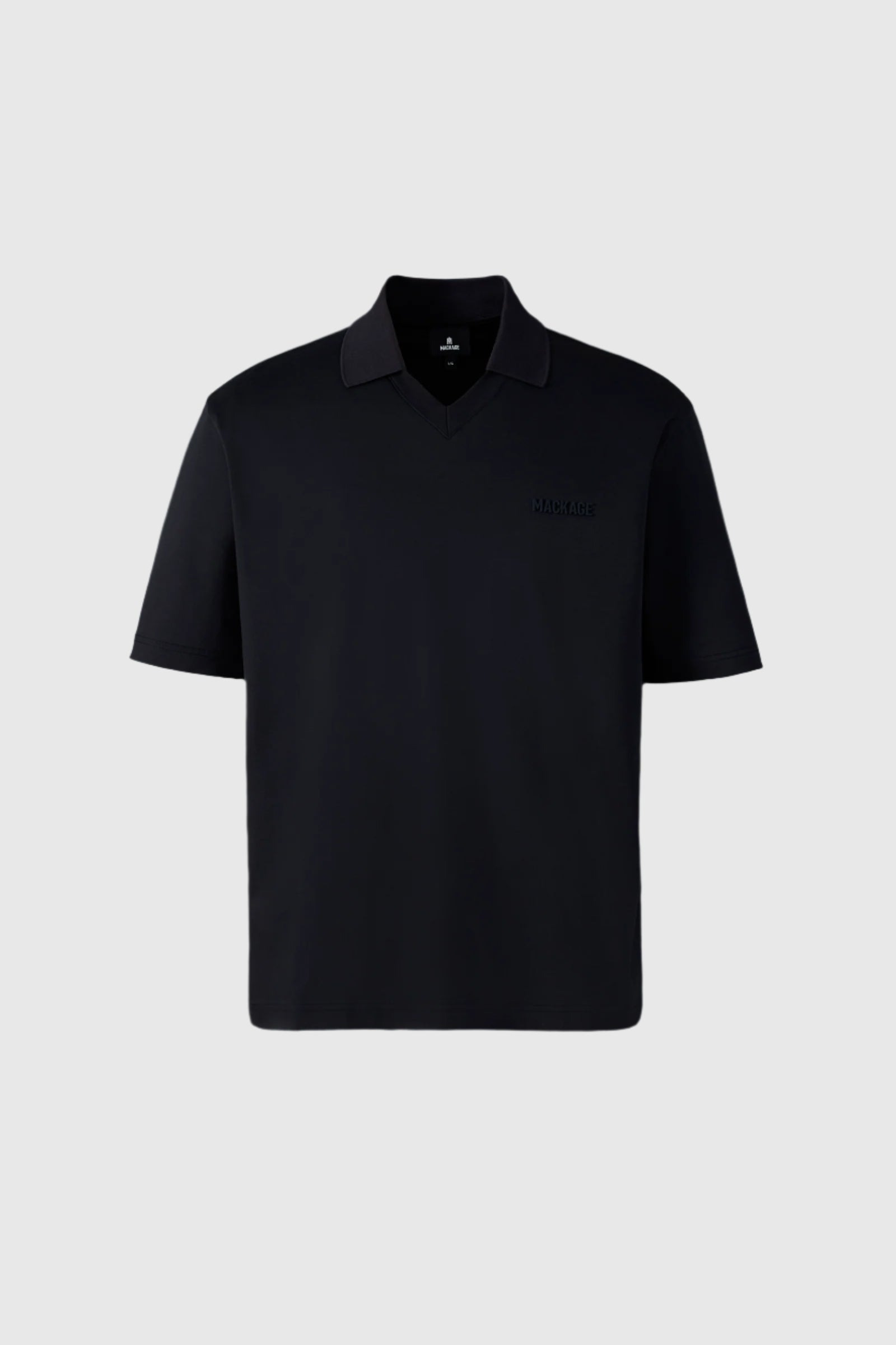 MARCO is a classic polo crafted from 100% organic mercerized cotton for breathable, everyday comfort. Featuring a subtle V-neck polo collar with rib knit detailing, it has a modern, relaxed style. Side slits at the hem add ease of movement and distinct styling, DETAILS - 100% organic cotton polo - Shallow V-neck with flat knit polo collar - Rubberized MACKAGE logo on chest - Side slits at hem - Machine washable - Unlined SIZE & FIT - RELAXED – Loose fit for on the go comfort. - Designed to be worn with heavier layers. - The model is 6'2" (187 cm) and wears a size L. - Length from shoulder to hem: 27 ¼'' / 70 cm. COMPOSITION & CARE - Shell: 100% organic cotton. - Wash in domestic or commercial machine in water not exceeding 30°C at normal setting. Use mild detergent. Wash with similar colors. Remove immediately after washing. Do not tumble dry. Iron with or without steam by hand, iron inside out, at low temperature (not exceeding 110°C). Do not bleach.