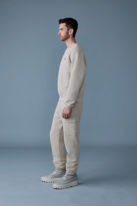 MARVIN-R are mixed-media sweatpants crafted from soft double face jersey. A remastered cargo style, it features a large flap patch pocket and elasticated cuffs for utilitarian comfort. Slash waist pockets add further functional detail. An ultra comfortable staple with elevated edge. - Sweatpants with cargo silhouette - Soft double face jersey - Contrast fabric detailing - Elastic waist with adjustable drawcord - Elastic cuffs - Flap patch pocket with signature mackage silicone branding - Slash waist pockets - Welt pocket at back - Machine washable - Classic fit SIZE & FIT - REGULAR – Classic fit allowing comfort and style. - Designed to be worn with heavier layers. - The model is 6'2" (187 cm) and wears a size L. - Inseam length: 28.75'' / 73 cm. Based on size M. COMPOSITION & CARE INSTRUCTIONS - Shell: 53% cotton, 47% polyester. Lining: 100% cotton. - Wash in domestic or commercial machine in water not exceeding 30°C at normal setting. Wash inside out. Use mild detergent. Wash with similar colors. Remove immediately after washing. Do not tumble dry. Iron with or without steam by hand, or press on commercial equipment, at low temperature (not exceeding 110°C). Do not bleach. Dry clean using oil-based solvent only. Do not use perchloroethylene.