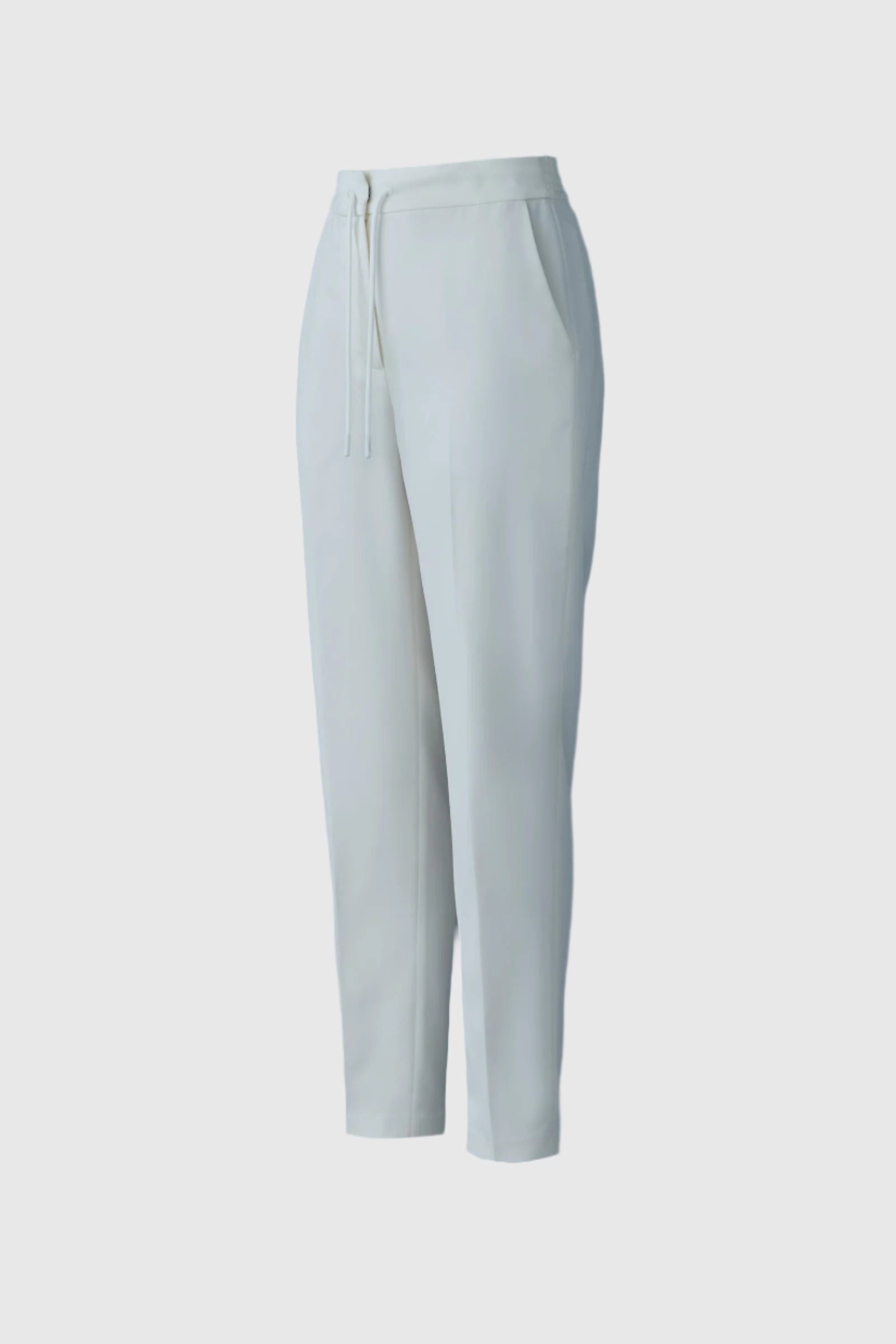 NIDYA are straight-leg wool pants crafted from soft wool. Design-forward with pleats at front and slash pockets at waist. Half-lined with center front fly closure zipper and hook & bar fastening for a comfortable fit. Modern and effortless ready-to-wear. DETAILS - Pleated wool pants - Inseam pocket - Half-lined - Elasticized waistband - Adjustable drawcord at waist - Back welt pocket - Slash pockets - Center front fly closure with zipper and hook & bar fastening SIZE & FIT - The model is 5'11" (180 cm) and wears a size S. - Inseam length: 28'' / 71 cm. COMPOSITION & CARE - Shell: 100% wool. Lining: 52% polyester, 48% viscose. - Dry clean by leather specialist using oil-based solvent only. Do not use perchloroethylene.
