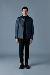REMINGTON is an unlined overshirt made from luxurious two-tone colored leather. Sharply tailored, it features a classic collar and front button closure. Raw edge construction with edge paint, matching the interior color of the two-tone leather, is noticeable at the collar, cuffs, and chest pocket. Classic ready-to-wear staple with subtle elevated detailing throughout. - Two-tone colored leather overshirt - Side seam pocket - Edge painted finishing - Classic collar - Debossed "MACKAGE" at patch pocket - Button front closure - Adjustable sleeve cuffs with buttons - Regular fit - Horn Buttons SIZE & FIT - REGULAR – Classic fit allowing comfort and style. - Designed to be worn with heavier layers. - The model is 6'2" (187 cm) and wears a size 40. - Coat length from shoulder to hem: 29.5'' / 75 cm. COMPOSITION & CARE INSTRUCTIONS - Shell: 100% lamb leather. - Dry clean by leather specialist using oil-based solvent only. Do not use perchloroethylene.