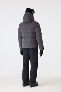 SAMUEL-SKI is a light sustainable CRS-certified down ski jacket for men featuring a removable snap hood fitted with an adjustable drawcord storm visor. Designed for comfort with a stretch shell, the classic cut can be customized for warmth with a drawcord hem and adjustable branded Velcro tab cuffs. Insulated slanted zip waist pockets offer further adaptability. An updated essential with leading performance, perfect for any ski day. DETAILS - Medium down ski jacket - GRS-certified recycled down - Removable snap hood - Adjustable drawcord storm visor - Center front zip closure with stand collar - Insulated zip waist pockets - Elastic bottom hem with adjustable drawcord - Elastic cuffs - Adjustable branded Velcro tab cuffs - Adjustable drawcord hem - Regular fit for comfort and style SIZE & FIT - REGULAR – Classic fit allowing comfort and style. - Designed to be worn with heavier layers. - The model is 6'2" (187 cm) and wears a size 40. - Length from shoulder to hem: 27 ½'' / 69 cm. COMPOSITION & CARE - Shell: 82% recycled nylon, 18% elastane/spandex. Combo: 82% polyester, 18% elastane/spandex. Lining: 82% recycled nylon, 18% elastane/spandex. Filling: 90% goose down, 10% feathers. Water-repellent & Water-resistant. - Close zippers. Remove fur, remove the puller. Washi nside out. Wash in domestic machine in water not exceeding 40°C, at normal setting. Use mild detergent. Remove immediately after washing. Do not soak. Tumble dry low heat with tennis balls, until fully dried (1 to 3 hours). Do not wet-clean. Do not bleach. Do not wring. Do not iron or press. Dry clean using oil-based solvent only. Do not use perchloroethylene.