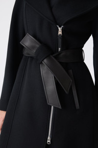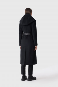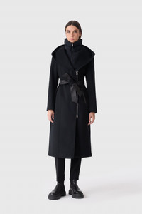 SHIA-LG is a 2-in-1 long coat featuring the Signature Mackage hood with a removable stretch light recycled down bib with stand collar. Expertly crafted with double-face wool, a shell and leather sash belt accentuate the fitted asymmetrical zip front. Mixed media details and leather welts add elegant edge. DETAILS - Long coat with asymmetrical zip closure - Temperature Rating: -5ºC - Soft double-face virgin wool - Removable light recycled down bib with stand collar and zip closure - Signature Mackage hood - Leather welt waist pockets - Shell and leather sash belt - Fitted cut SIZE & FIT - FITTED – Our signature fit, closest to the body. - Designed to be worn with light layers, all while keeping you warm. - For heavier layering, we recommend sizing up. - The model is 5'11" (180 cm) and wears a size S. - Coat length from shoulder to hem: 39'' / 61 cm. COMPOSITION & CARE - Shell: 100% wool. Lining: 52% polyester, 48% viscose. Filling: 90% down, 10% feathers. - Dry clean by leather specialist using oil based solvent only. Do not use perchloroethylene.