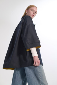 The oversized, elegant cocoon design of this cropped-style coat is easily worn. With standout silver button detailing, the coat is undeniably stylish whilst also being made from the famed Mackintosh rubberised cotton making it completely waterproof, with hand-taped seams to keep wet weather out. Made in: Handmade in Scotland Fabric: Rubberised bonded cotton Attributes: Waterproof windbreaker. Hand-taped seams. Suitable for 3 seasons Detailing: Elegant, cocoon design. Cropped-style coat. Metal buttons with branded logo Item code: RO6563 SIZE & FIT Fit: Oversized Model: Holly is wearing a UK size 8. Height: 179cm. Dress size: UK 6. Bust: 79cm. Waist: 60cm. Hips: 89cm FABRIC & CARE Composition: 100% Cotton Bonded Washing: Spot clean only. Do not machine wash. Do not dry clean. Day to day: Small marks can be removed with soap and water. Apply soap with a soft brush only. Never use spirit or any other chemical cleaners.