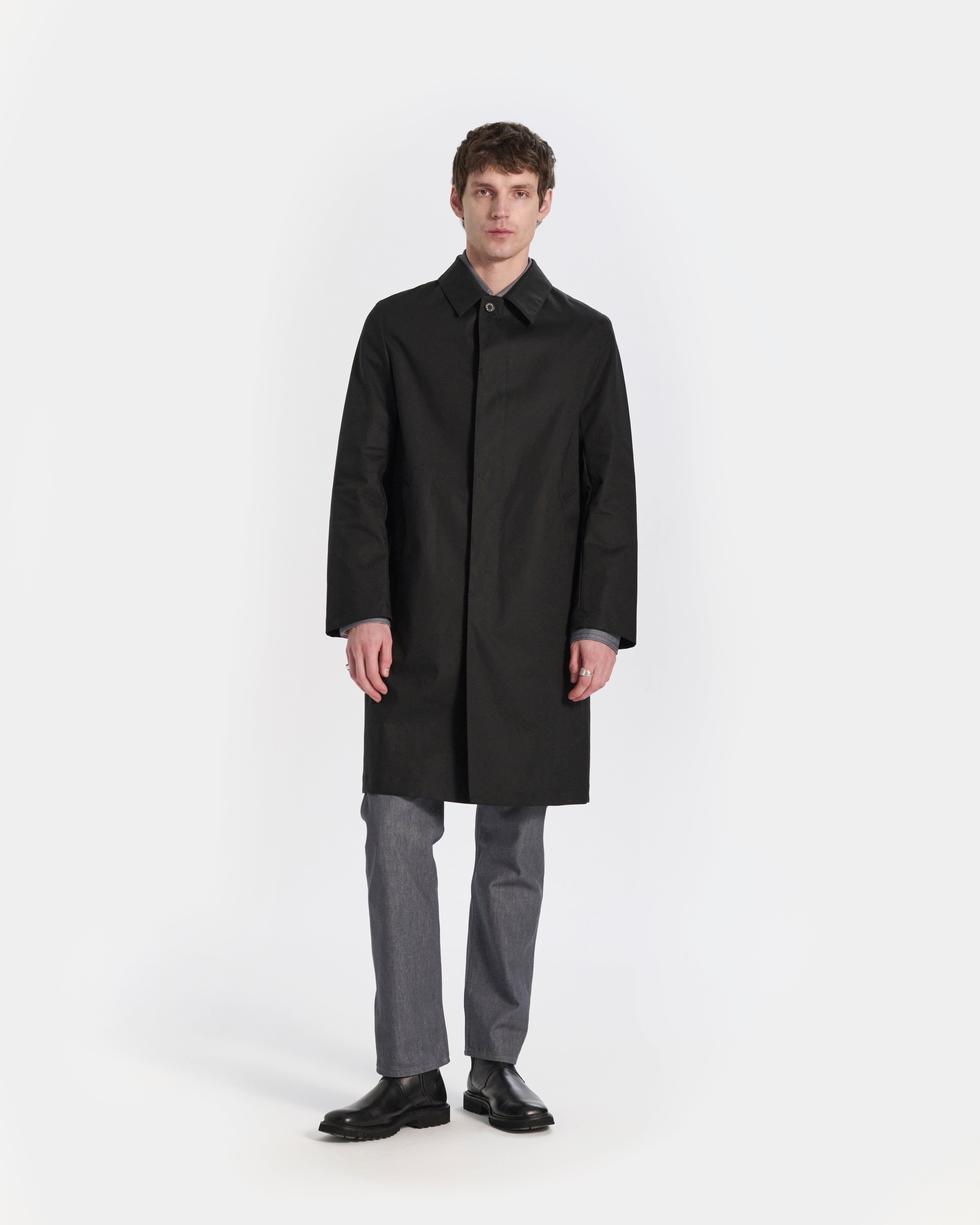 Made from Raintec, this version of the Dunkeld is a waterproof and breathable 3/4 length coat that features a concealed button placket, throat latch and slit pockets. The Dunkeld is a clean-cut and contemporary single breasted coat designed to keep the weather out and keep you looking sharp even if the weather is changeable. Fabric: Raintec Attributes: Raintec waterproof fabric. Concealed button placket. Throat latch Detailing: Single-breasted coat. Sophisticated collar shape. Three-dimensional pattern Item code: MO9211 SIZE & FIT Fit: Regular Advice: Size up if worn with tailoring Model: Theo is wearing a UK size 40. Height: 188cm. Weight: 76kg. Chest: 95cm. Waist: 76cm. Hips: 81cm FABRIC & CARE Composition: 100% Cotton Washing: Dry clean only