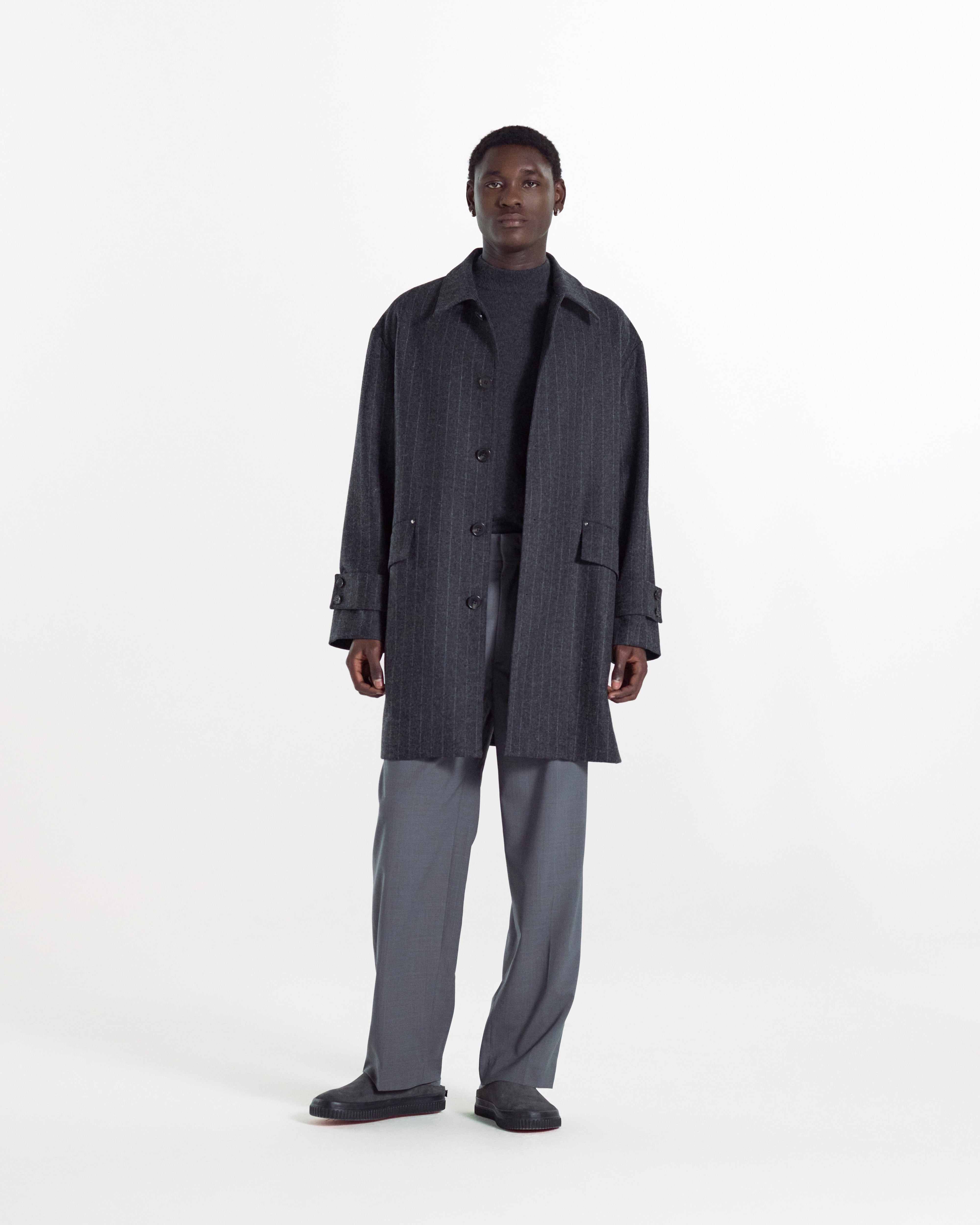 The Humbie Slim is a streamlined rendition of the oversized, wide-silhouette Humbie. While maintaining a modern aesthetic, this coat stands out with authentic details like rivet-reinforced flap pockets and a detachable chin tab. Made in: United Kingdom Fabric: Wool Attributes: 100% Wool Detailing: Neck guard. Flap pockets. Cuff tabs Item code: MO9324 SIZE & FIT Fit: Regular Model: Duel is wearing a UK size 40. Height: 189cm. Chest: 88cm. Waist: 72cm. Hips: 94cm FABRIC & CARE Composition: 100% Wool Washing: Dry clean only