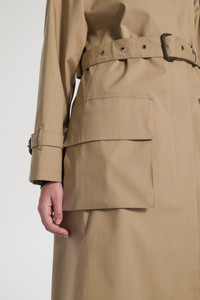 The Kelvin trench coat offers a stylish form with square patch pockets and raglan sleeves for a modern take on the classic military coats. Fabric: Raintec Attributes: Waterproof. Breathable fabric. Dry cleanable Detailing: Square patch pockets. Raglan sleeves. A modern take on the classic military style Item code: MO9143 SIZE & FIT Fit: Regular Model: Jensen is wearing a UK size 8. Height: 170cm. Dress size: UK 6. Bust: 86cm. Waist: 62cm. Hips: 93cm FABRIC & CARE Composition: 100% Cotton Washing: Dry clean only