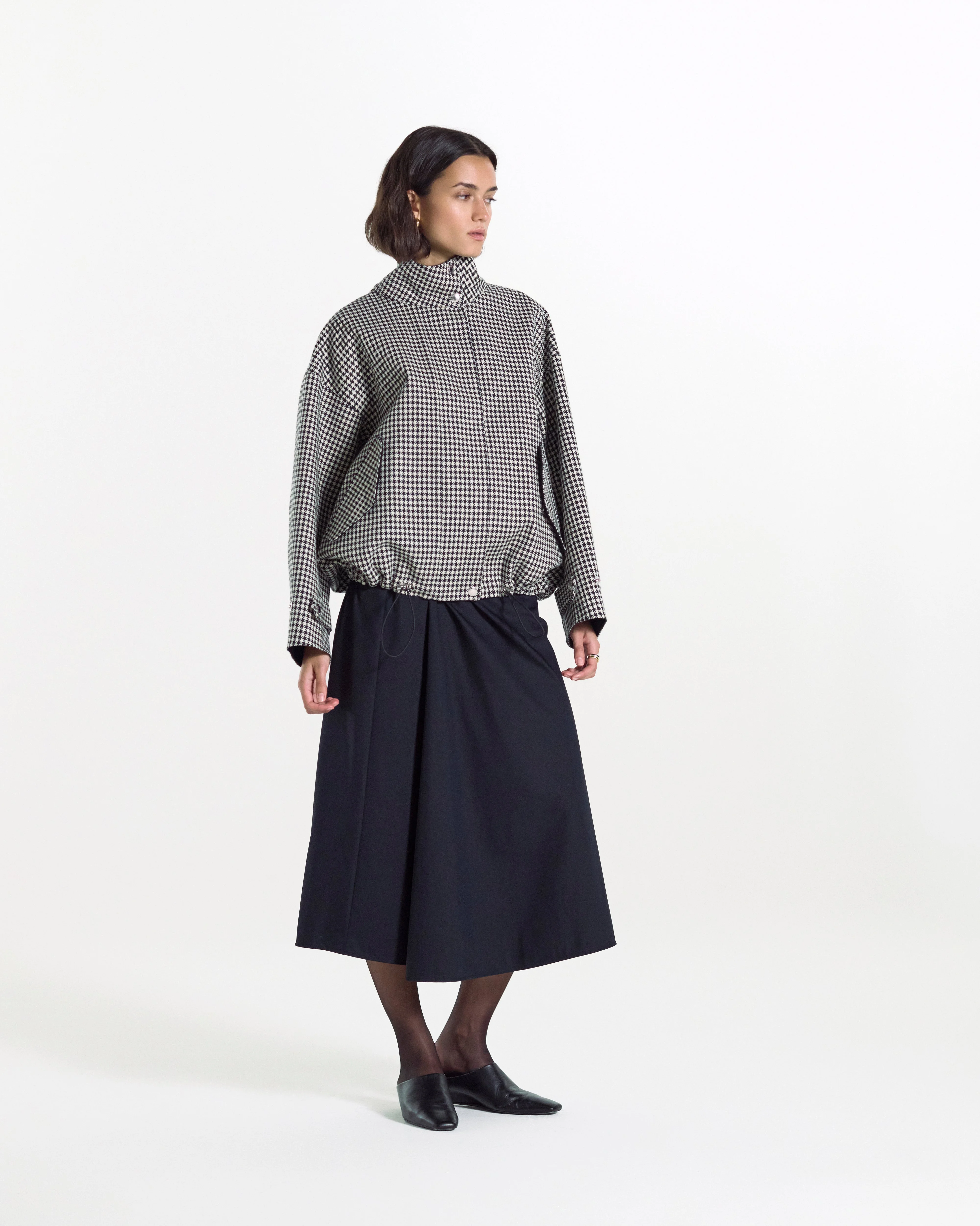 The Langholm is a waterproof bonded wool stand collar jacket with drop shoulders. This bomber-like short jacket is made of tweed material with a British check pattern to give it a feminine silhouette. The bi-color design on the inside gives it a contemporary feel. Fabric: Raintec® Attributes: Waterproof. Breathable Detailing: Stand collar. Flap pockets Item code: OC1197 SIZE & FIT Fit: Regular Model: Olivia is wearing a UK size 8. Height: 176cm. Dress size: UK 6. Bust: 76cm. Waist: 61cm. Hips: 92cm FABRIC & CARE Composition: 100% Cotton Washing: Gentle wet clean. Do not dry clean. Do not machine wash.