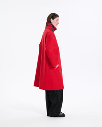 A balmacaan coat with a loose and beautiful A-line silhouette. A tartan check pattern print is used on the back side, making it reversible and wearable Made in: Handmade in Scotland Fabric: Rubberised bonded cotton Attributes: Waterproof. Windproof. Reversible Detailing: Reversible. Concealed button placket. Removable neck latch Item code: RO6645 SIZE & FIT Model: Lottie is wearing a UK size 8. Height: 176cm. Dress size: UK 6. Bust: 76cm. Waist: 61cm. Hips: 92cm FABRIC & CARE Composition: 100% Cotton Bonded Washing: Spot clean only. Do not machine wash. Do not dry clean. Day to day: Small marks can be removed with soap and water. Apply soap with a soft brush only. Never use spirit or any other chemical cleaners.