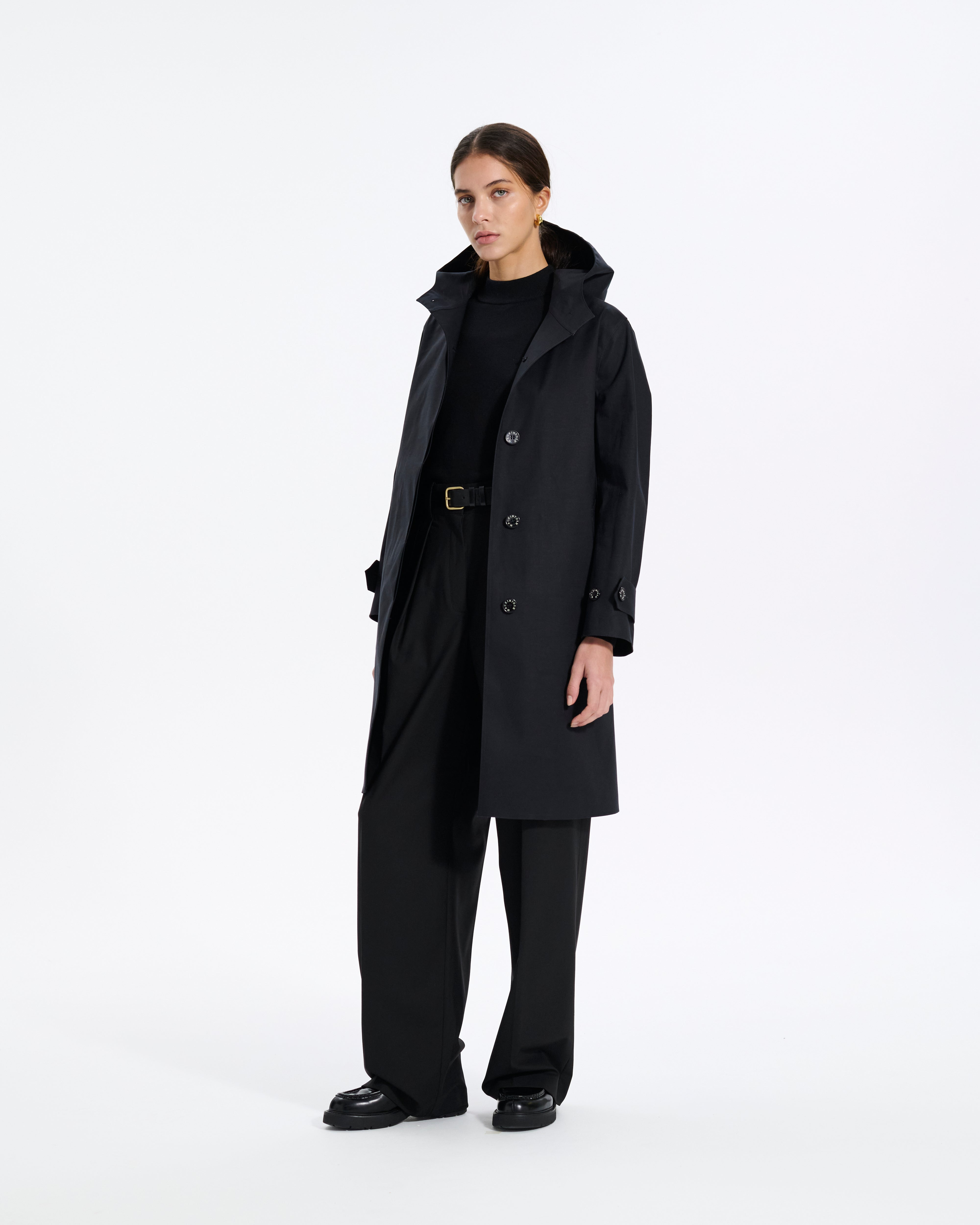 With a classic and minimalist Hiyoku design, the Watten coat offers a clean silhouette with added protection from the elements with its classic hooded look. The coat has been crafted with care for maximum functionality, featuring our famed rubberised fabric for a complete waterproof finish, underarm eyelets for breathability, and hand-taped seams for total weather protection. Made in: Handmade in Scotland Fabric: Rubberised bonded cotton Attributes: Waterproof windbreaker. Underarm eyelet ventilation. Hand-taped seams. Chin strap Detailing: Minimalist Hiyoku-style design. Classic A-line shape. Buttons with branded logo Item code: RO6556 SIZE & FIT Fit: Regular FABRIC & CARE Composition: 100% Cotton Bonded Washing: Spot clean only. Do not machine wash. Do not dry clean. Day to day: Small marks can be removed with soap and water. Apply soap with a soft brush only. Never use spirit or any other chemical cleaners.